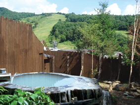 天然記念物ともいわれる樹齢1650年、直径3.2メートルのレッドウッドをくりぬいた丸太の露天風呂が自慢の「奥山田温泉 レッドウッドイン」。北信五岳や北アルプスを一望する標高1500mの場所にある温泉で、巨大丸太風呂に浸かりながら眺める景色は、夕日や夜景や朝もやなどのように、時間によっても違った雰囲気を見せてくれます。もちろん、四季折々の変化も楽しめ、冬の雪景色も最高です。